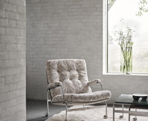 From the classic Bruno Mathsson design, the Karin Easy chair offers elegant seating with a frame in fine chrome and a deep-stitched cushion.